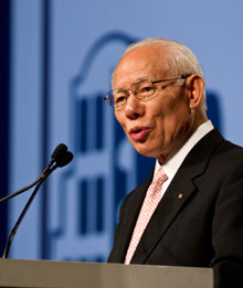El presidente electo de RI Sakuji Tanaka exhorta a los rotarios a construir La paz a través del servicio en 2012-2013.