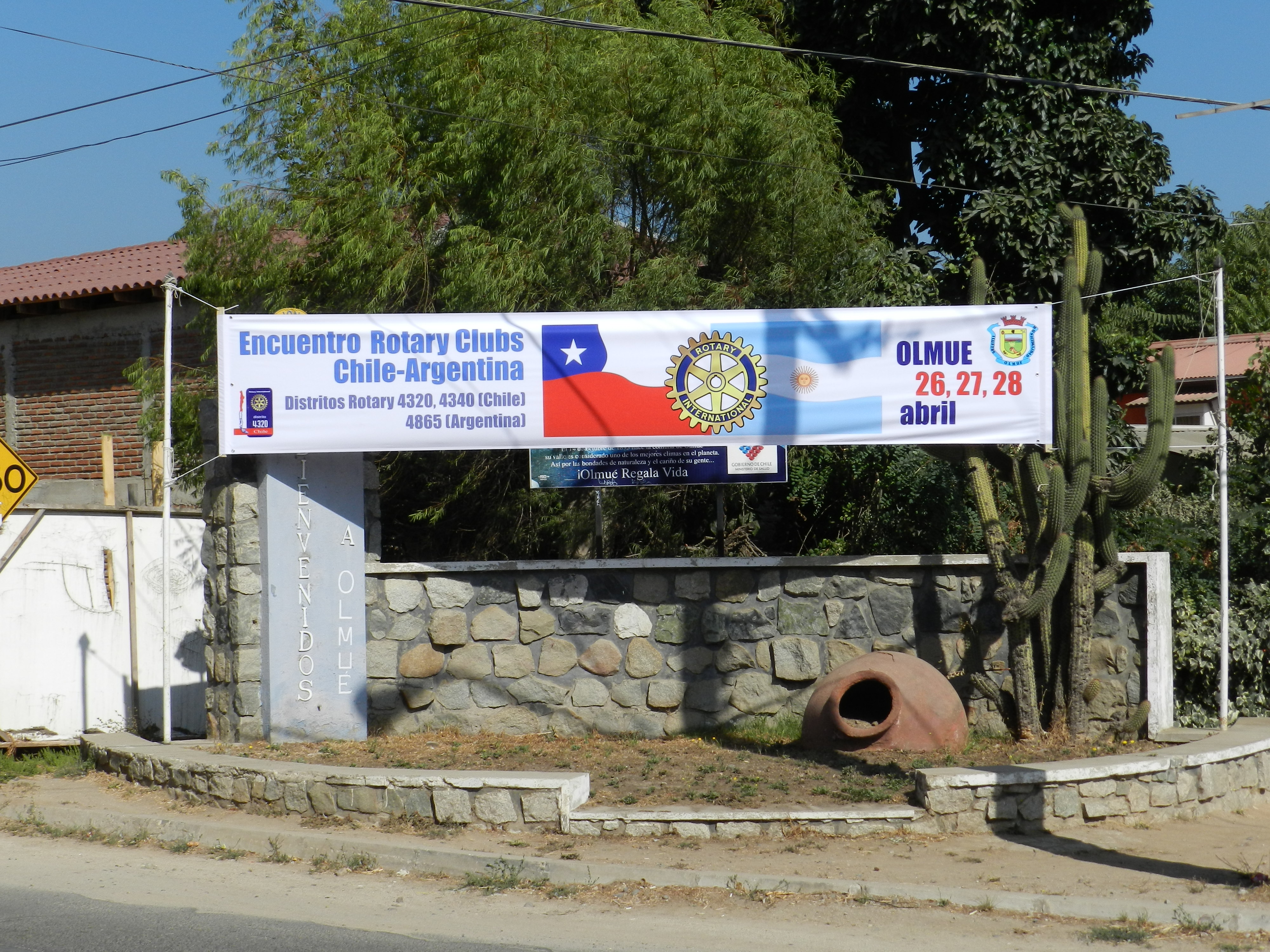 Como una manera de promocionar el «Encuentro Rotario Chile Argentina», a realizarse en nuestra Comuna los días 26, 27 y 28 de abril, Rotary Club Olmué, junto a la Ilustre Municipalidad de Olmué, instaló varios Pasacalles en diferentes puntos de a comuna.